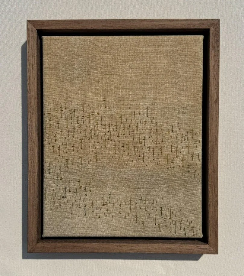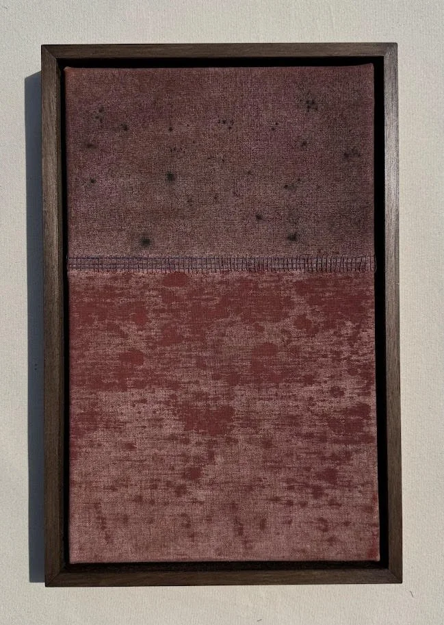 Recently, valuing the tonal richness and unpredictability of natural inks and earth pigments, Debbie has explored eco-conscious methods of working which aligns with her sensitivity to the environment and material authenticity. In her textile works, stitch functions as both mark and meaning, referencing the Celtic ogham tree alphabet and the idea of “thin spaces” between worlds. Through layered surfaces, natural materials, and symbolic stitching, her work invites contemplation of the enduring dialogue between land and identity of self.