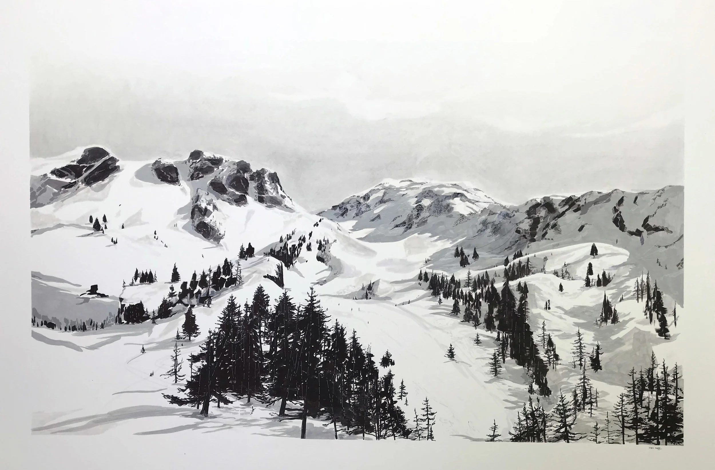 Sam Gare’s approach depicts the wild landscapes from which modern urban lifestyles are increasingly disconnected. As the consequences of the ever increasing encroachment of “civilization” on nature begins to seriously show it’s scars on the wild, her work raise’s awareness of conservation and the importance to protect and respect the wilderness. Sam’s work shares the positive power of the wild on the human spirit and soul.