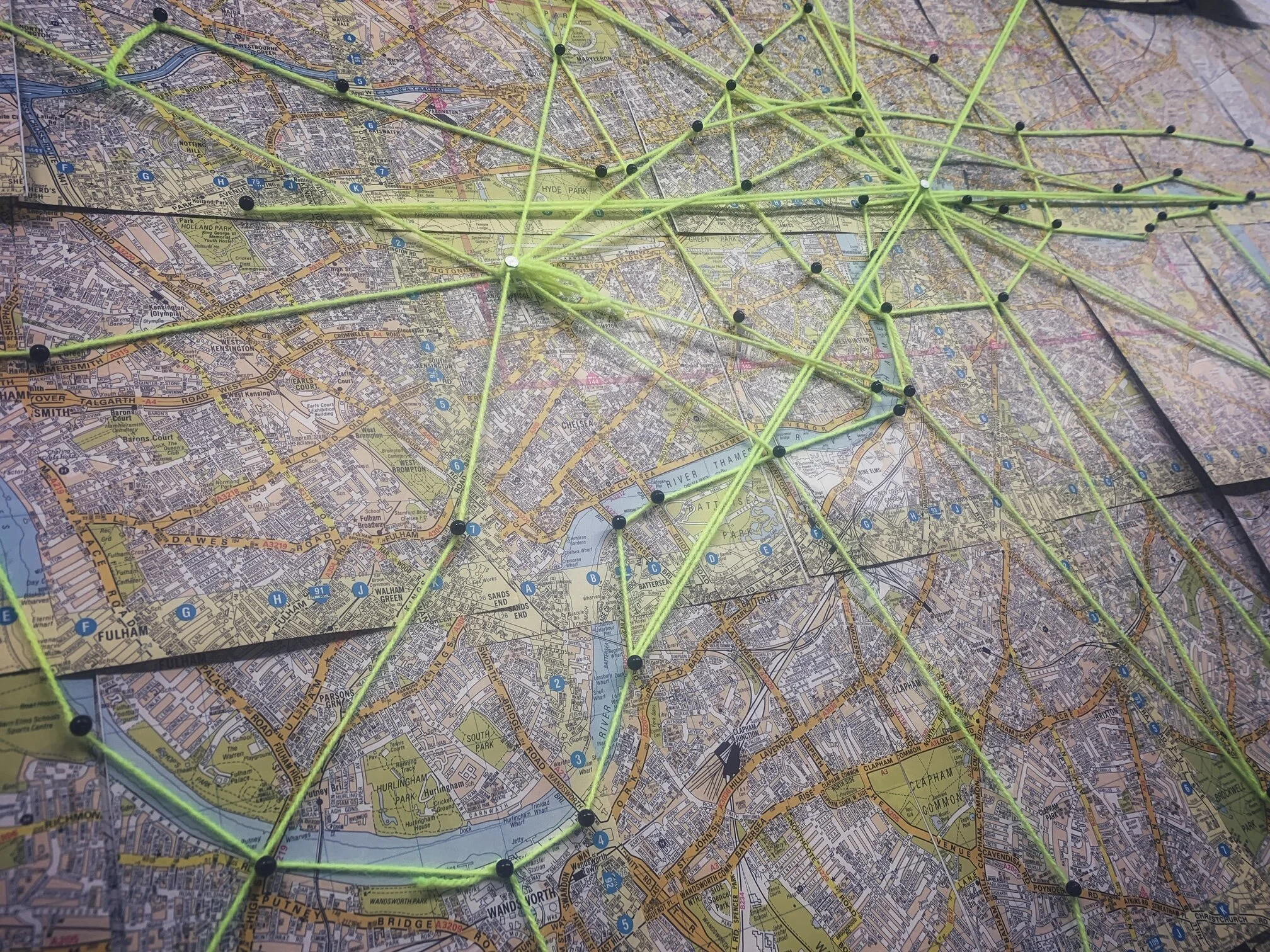 In 2012/13 Luke attempted to find wilderness in the city by walking the River Thames, which took him from one side of the city to the other. This began a series of walks, tracing rivers, circling the city and specific walks in different directions from 5 to 25 miles at a time. Under lock-down, he has been re-imagining these art walks.